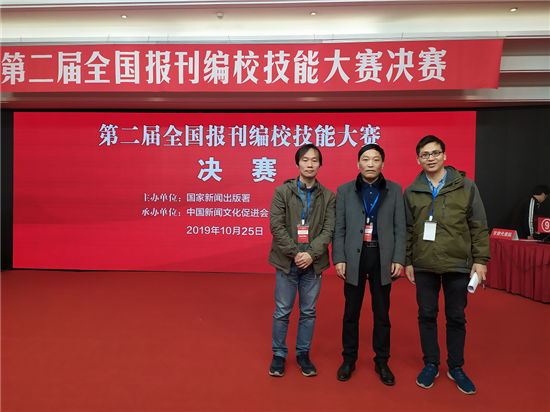 10月24日至25日,第二屆全國報刊編校技能大賽決賽在北京中傳國際交流中心舉行,報刊集團(tuán)王盈、姜楚華、陳建軍三位選手代表湖北省參賽,以410分的總成績榮獲二等獎。
