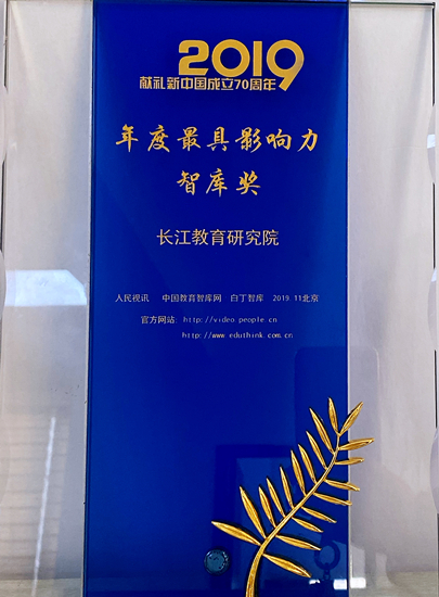 長江教育研究院榮獲“2019年度最具影響力智庫獎”