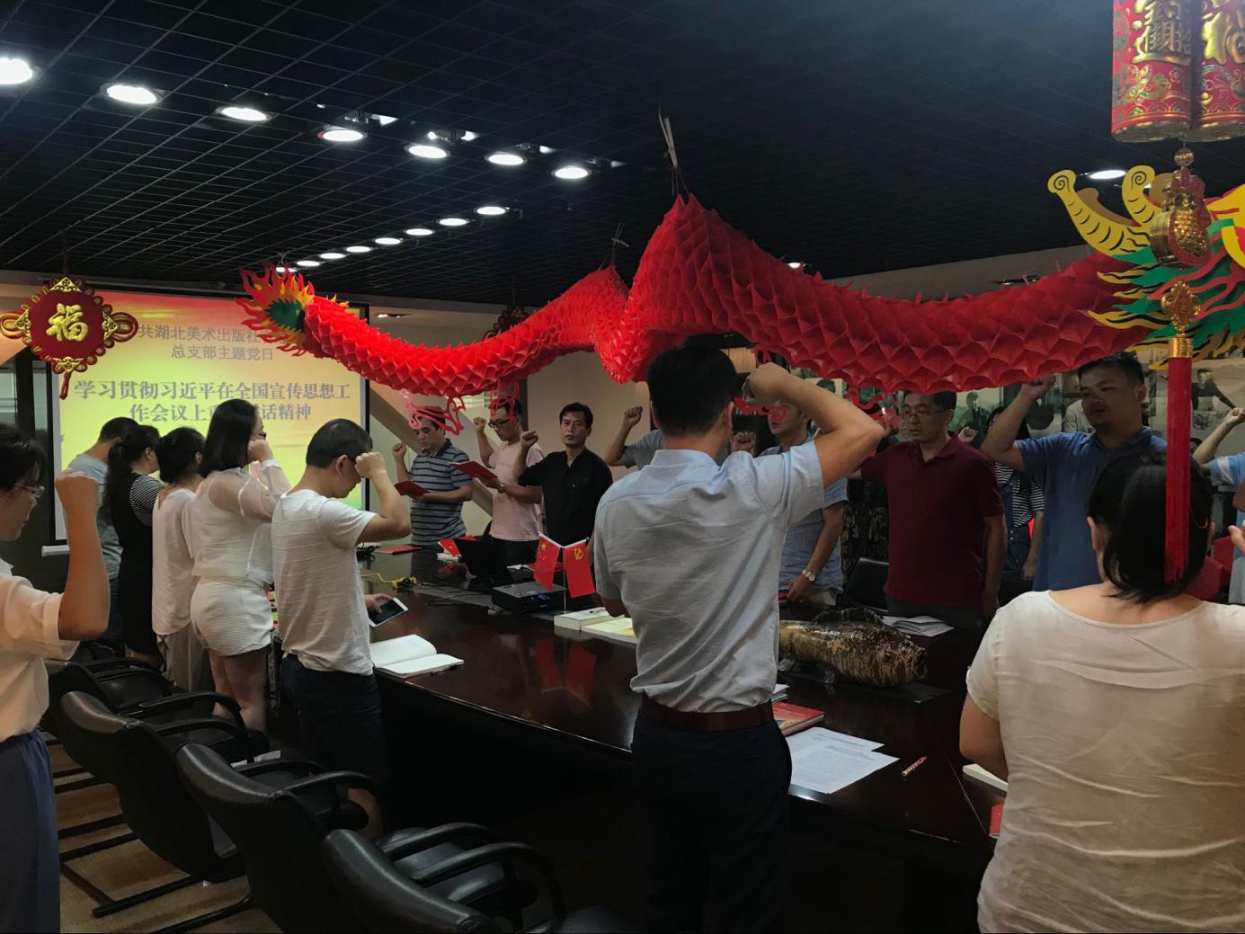 8月31日下午,湖北美術(shù)出版社黨總支在十八樓會議室開展以“學(xué)習(xí)貫徹習(xí)近平在全國宣傳思想工作會議上重要講話精神”為主題的支部黨日活動,圍繞深入學(xué)習(xí)貫徹習(xí)近平總書記在全國宣傳思想工作會議上的講話精神,舉旗幟、聚民心、育新人、興文化、展形象,努力做好出版工作,更好完成新形勢下宣傳思想工作使命任務(wù)。