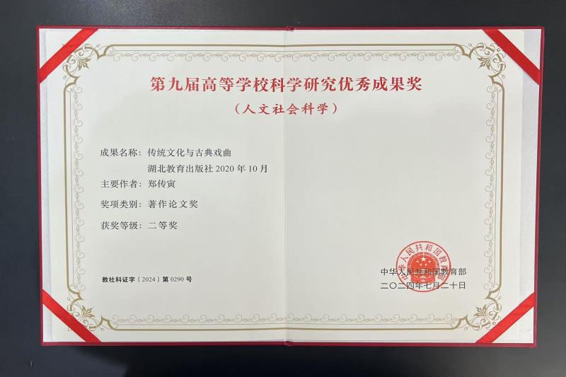 《傳統(tǒng)文化與古典戲曲》榮獲第九屆高等學(xué)??茖W(xué)研究優(yōu)秀成果獎(人文社會科學(xué))著作論文獎二等獎