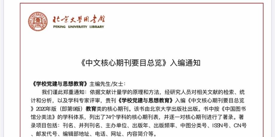 《學(xué)校黨建與思想教育》入選2020年版全國(guó)中文核心期刊