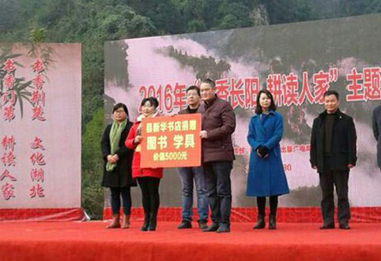 11月30日上午,由長(zhǎng)陽(yáng)縣委宣傳部、縣文體新聞出版廣電局、龍舟坪鎮(zhèn)黨委、新華集團(tuán)長(zhǎng)陽(yáng)縣分公司聯(lián)合開(kāi)展的2016年“書(shū)香長(zhǎng)陽(yáng) 耕讀人家”主題活動(dòng)暨百姓讀書(shū)用書(shū)宣講活動(dòng),在長(zhǎng)陽(yáng)土家族自治縣龍舟坪鎮(zhèn)鄭家榜村隆重舉行。