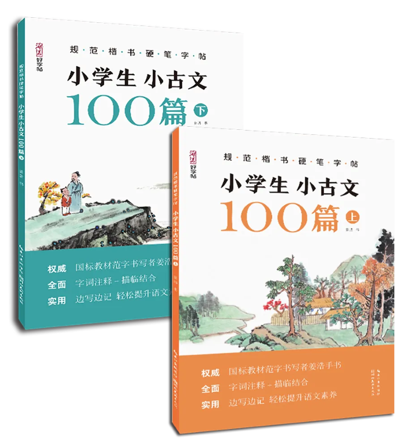 規(guī)范楷書(shū)硬筆字帖·小學(xué)生小古文100篇(上/下)簡(jiǎn)介本套書(shū)針對(duì)小學(xué)階段語(yǔ)文課程標(biāo)準(zhǔn)要求,精心挑選文言文中篇幅短小、內(nèi)容淺近的部分供小學(xué)生閱讀學(xué)習(xí)背誦。所選主題涉及田園風(fēng)景、天氣變化、動(dòng)物植物習(xí)性、成語(yǔ)寓言故事等多個(gè)板塊,在拓寬小學(xué)生閱讀視野的同時(shí)通過(guò)閱讀、書(shū)寫(xiě)培養(yǎng)語(yǔ)感,讓孩子樂(lè)學(xué)、好學(xué),提升閱讀和書(shū)寫(xiě)能力。(肖志婭)出版單位:湖北美術(shù)出版社