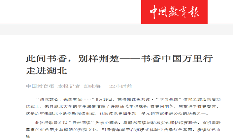 中國教育報 | 此間書香,別樣荊楚——書香中國萬里行走進(jìn)湖北