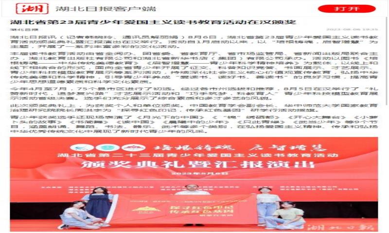 湖北日?qǐng)?bào) | 湖北省第23屆青少年愛(ài)國(guó)主義讀書(shū)教育活動(dòng)在漢頒獎(jiǎng)