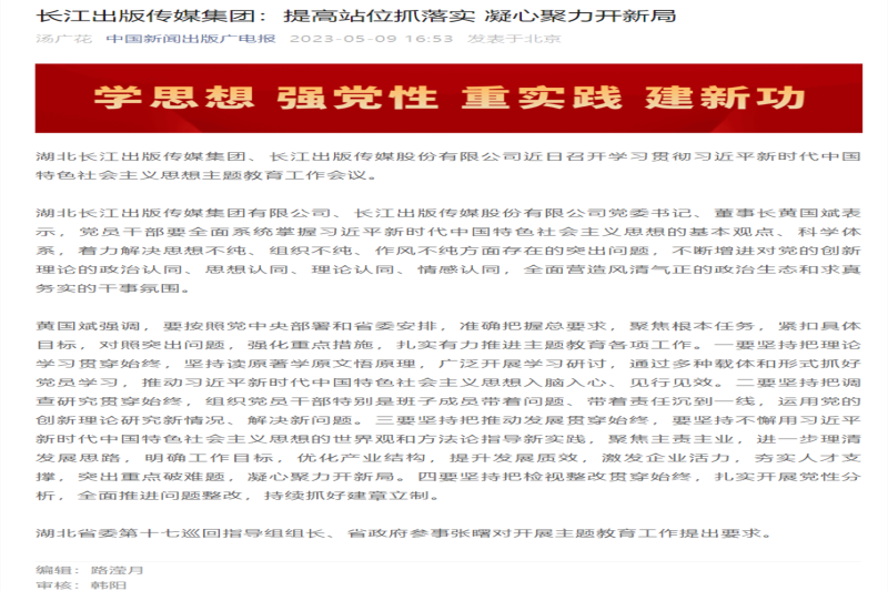 中國新聞出版廣電報|長江出版?zhèn)髅郊瘓F:提高站位抓落實 凝心聚力開新局