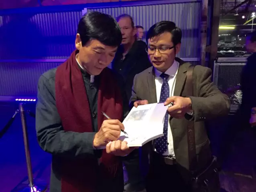 國際安徒生獎頒獎晚宴現(xiàn)場,曹文軒老師在《曹文軒畫本-草房子》扉頁為長江少年兒童出版社題詞。