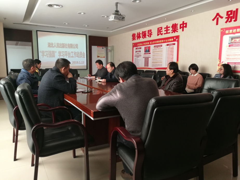 為認(rèn)真貫徹落實(shí)中宣部和省委宣傳部、長(zhǎng)江出版?zhèn)髅郊瘓F(tuán)關(guān)于“學(xué)習(xí)強(qiáng)國(guó)”學(xué)習(xí)平臺(tái)推廣應(yīng)用有關(guān)會(huì)議精神,1月17日,湖北人民出版社第一時(shí)間組織召開(kāi)了使用“學(xué)習(xí)強(qiáng)國(guó)”平臺(tái)學(xué)習(xí)工作動(dòng)員會(huì),要求全體黨員高度重視,積極參與,做到橫向到邊、縱向到底。動(dòng)員會(huì)后,各黨支部隨即召開(kāi)支部會(huì)議,組織黨員下載并注冊(cè)“學(xué)習(xí)強(qiáng)國(guó)”APP,迅速搭建起人民社的學(xué)習(xí)組織架構(gòu)。