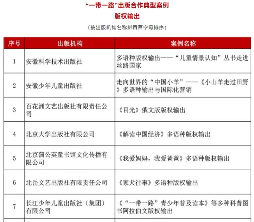 該評選由中國出版協(xié)會“一帶一路”出版工作委員會面向全國各級各類出版社(集團)、相關(guān)單位征集,經(jīng)工委會秘書處初審和指導委員會終審,共有92個案例入選。