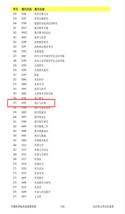 近日,2025年中國(guó)科技論文統(tǒng)計(jì)結(jié)果發(fā)布會(huì)在北京召開(kāi)。會(huì)上,科技部中國(guó)科學(xué)技術(shù)信息研究所發(fā)布了《中國(guó)科技核心期刊目錄(2025年版)》。自2016年以來(lái),《統(tǒng)計(jì)與決策》已連續(xù)9次入選“中國(guó)科技核心期刊”。