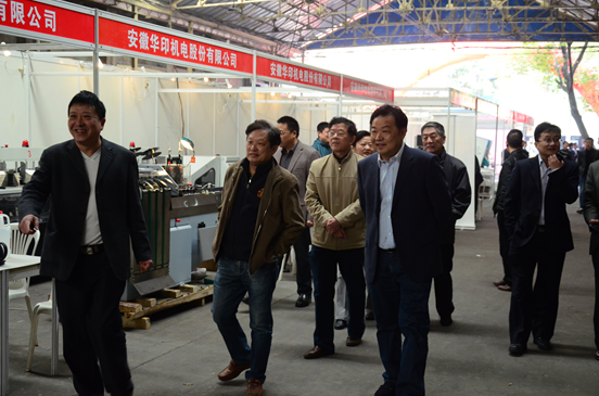 (袁國(guó)雄董事長(zhǎng)陪同湖北省印刷協(xié)會(huì)王光泰會(huì)長(zhǎng)參觀展會(huì)現(xiàn)場(chǎng))