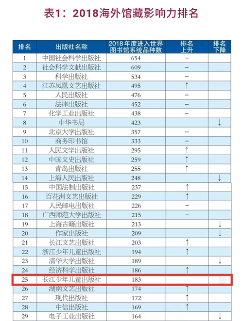 長(zhǎng)江少兒社榮獲2018中國(guó)圖書海外館藏影響力出版100強(qiáng)