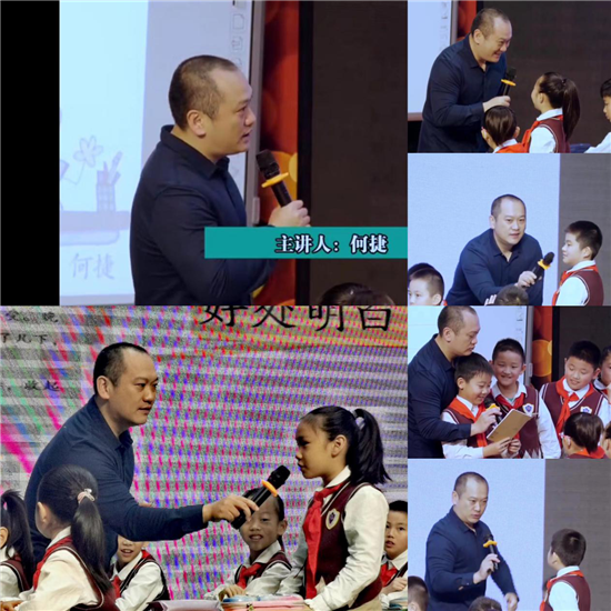 公開課現(xiàn)場(chǎng),何捷老師通過與現(xiàn)場(chǎng)學(xué)生的互動(dòng)交流,讓孩子們童真、童趣、天真無邪的性情大膽呈現(xiàn)。何捷老師巧妙地給予學(xué)生寫作知識(shí)的支架,運(yùn)用課例舉一反三,告訴孩子們寫作的真諦。