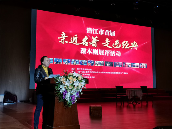 “文學(xué)構(gòu)造世界,舞臺(tái)演繹人生”。潛江市教育局副局長(zhǎng)伍孝江在開幕致辭中提到,潛江市教育局教研室舉辦的首屆課本劇展評(píng)活動(dòng),各個(gè)學(xué)校的師生將文學(xué)名著選段、片段改編成劇本由學(xué)生演繹,課本劇的展評(píng)融欣賞性、娛樂性及教育性于一體,課本劇讓語文課更有效更精彩,是深受學(xué)生喜愛的學(xué)習(xí)與實(shí)踐方式。本次活動(dòng)是落實(shí)新課程育人方式改革的具體實(shí)踐與探索,對(duì)全市語文教學(xué)乃至課程整體改革具有啟發(fā)意義,這種探索精神也值得各學(xué)科、各學(xué)段老師借鑒學(xué)習(xí)。
