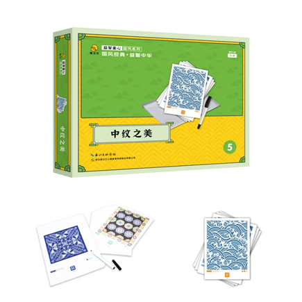 從玩法動畫,我們觀察到卡片選取了中華文化發(fā)展幾千年的變遷中極具代表性的傳統(tǒng)紋樣:窗格、瓷器、金銀器、刺繡、壁畫等各種紋樣圖案,通過引導(dǎo)孩子欣賞、臨摹,在過程中提升孩子的審美及描畫能力。