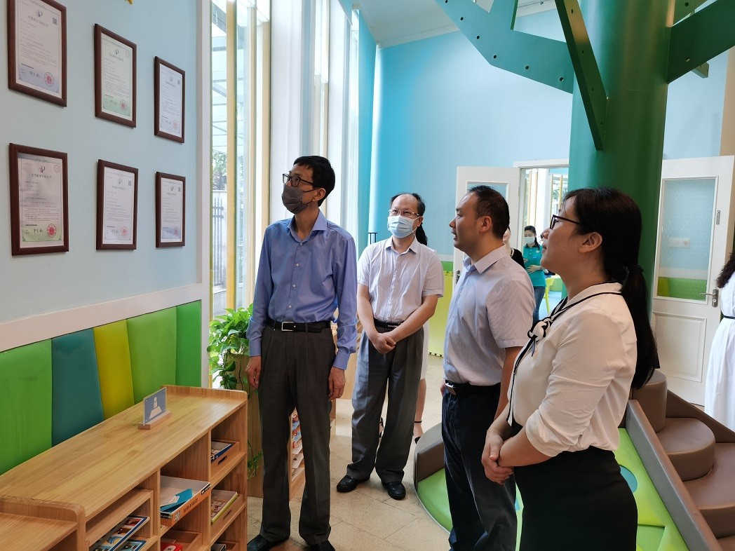 參觀中,黃國斌詳細詢問了幼兒園目前的招生情況、幼兒在園適應(yīng)情況及園所防控措施。