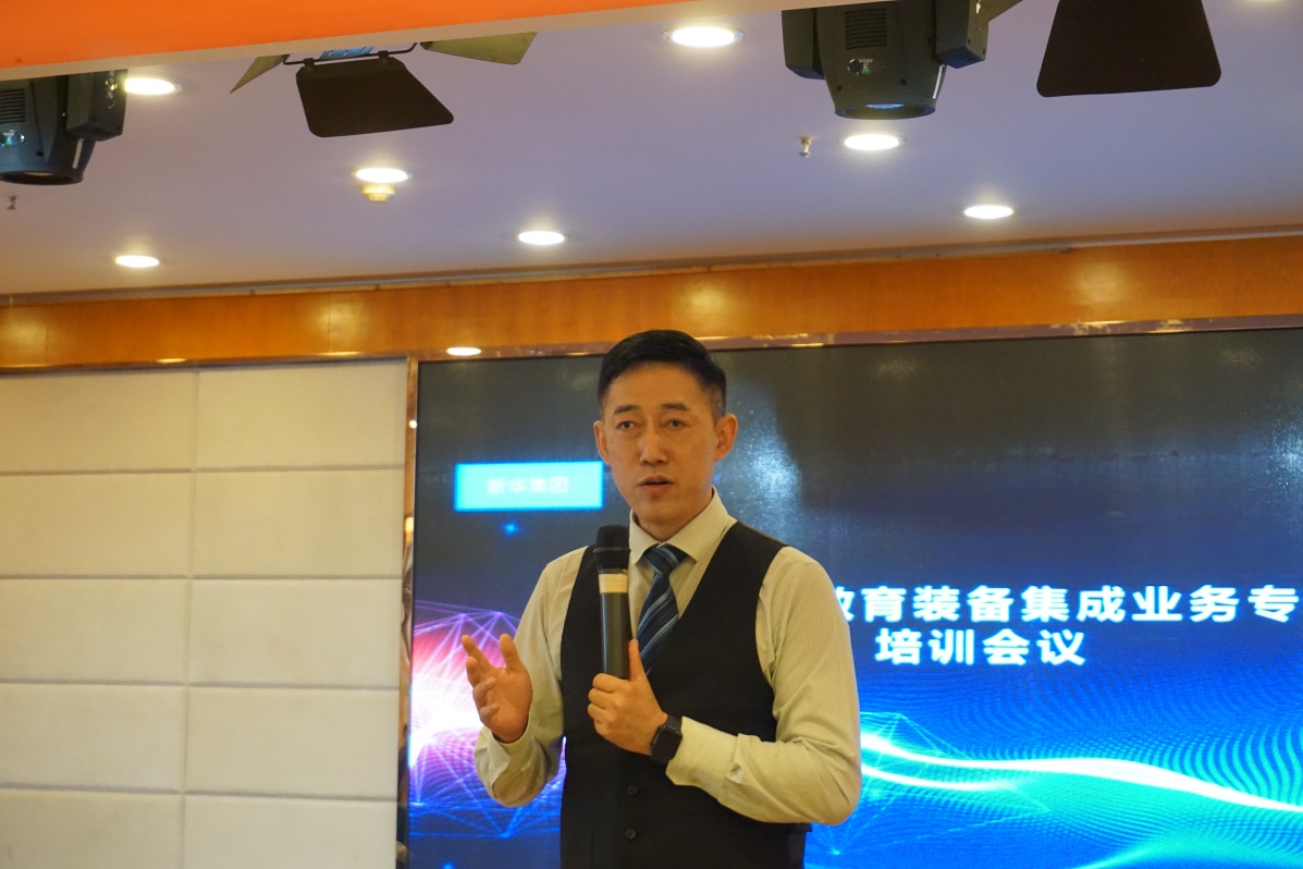 文教公司經(jīng)理韓東進從推進情況、團隊建設(shè)、下一步工作著力點等方面,就新高考業(yè)務(wù)進行了講解,并作出工作部署;副經(jīng)理何立從任務(wù)、政策、策略、風(fēng)控等方面對教育裝備集成業(yè)務(wù)作了介紹并提出要求。