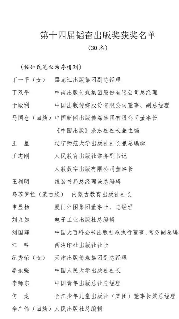 韜奮出版獎旨在表彰和鼓勵對出版業(yè)作出突出貢獻(xiàn)的出版工作者。評選始于1987年4月,至今已經(jīng)舉辦了14屆,共有228人獲此殊榮。